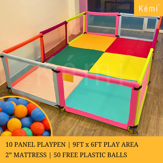 Kemi 10 Panel Baby Playpen with 2 inch Mattress | Sturdy Frame | Baby Safety First | High Quality